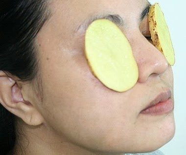 Slices of raw potato when applied on eyes help to reduce swelling and puffiness. Cut 2 fresh potato slices and place them on your eyes for 15-20 minutes. Chill potato slices are more effective in reducing dark circles and eyes puffiness.