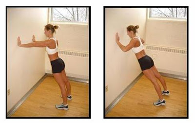 - (1)Stand facing a wall, and place both palms against it at shoulder height, with your fingers pointing up.
